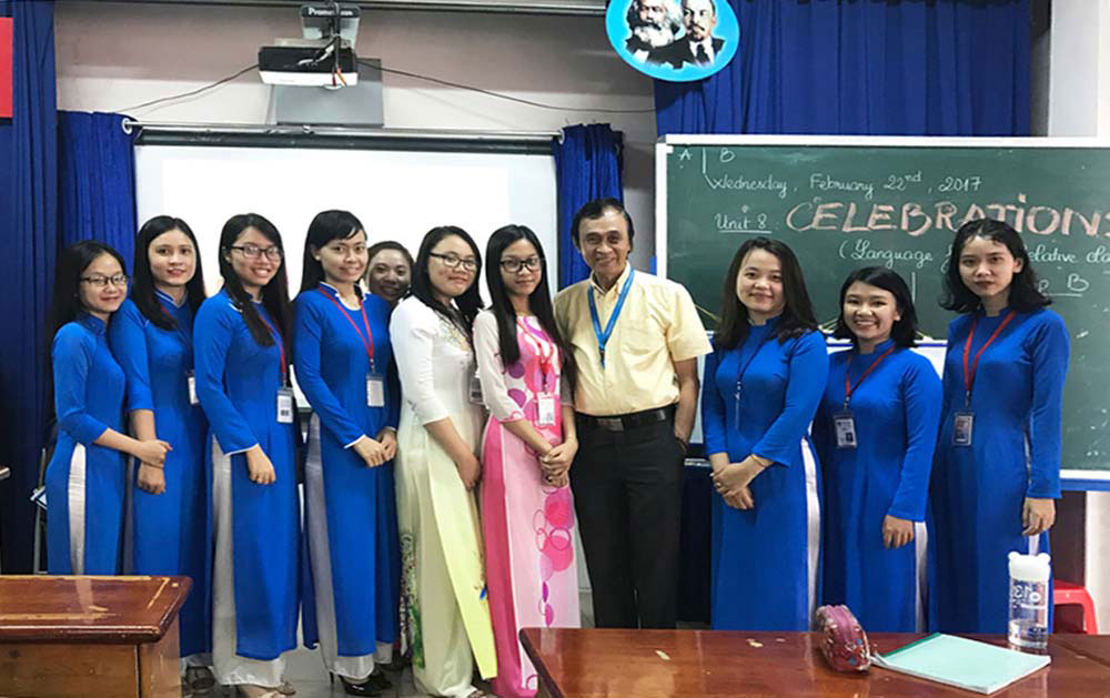 Buổi đón tiếp này nằm trong công tác viếng thăm thường xuyên của Ban Hướng Dẫn chương trình thực tập nghiệp vụ sư phạm giảng dạy tiếng Anh dành cho sinh viên Khoa Ngoại Ngữ khóa 19, gồm 40 thực tập sinh. Thời gian từ 13/2/2017 đến 11/03/2017.