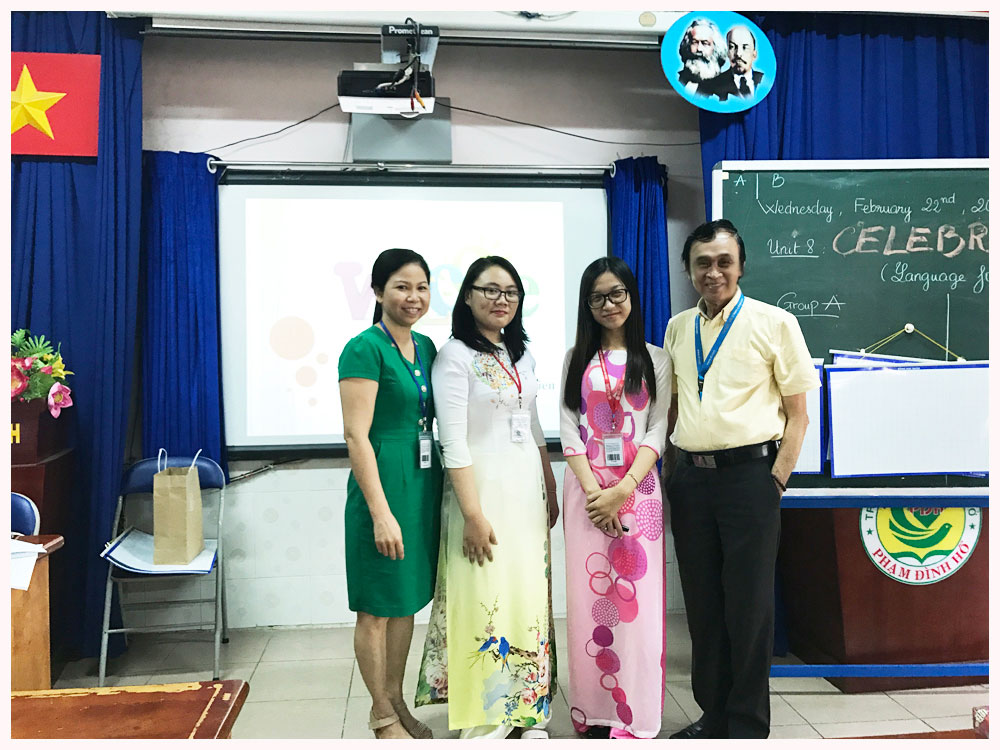 Sáng ngày 21 tháng 2 năm 2017, Hiệu Trưởng trường THCS Phạm Đình Hổ (270 Gia Phú, Phường 1, Quận 6, TP.HCM) - Bà Vũ Ngọc Hằng đã có buổi đón tiếp Ban Hướng Dẫn chương trình thực tập nghiệp vụ sư phạm giảng dạy tiếng Anh của Khoa Ngoại Ngữ trường Đại học Văn Lang gồm ThS. Lâm Hữu Tài - Phó Trưởng Khoa Ngoại Ngữ và ThS. Lê Thị Ngọc Diệp - Giảng Viên Khoa Ngoại Ngữ.